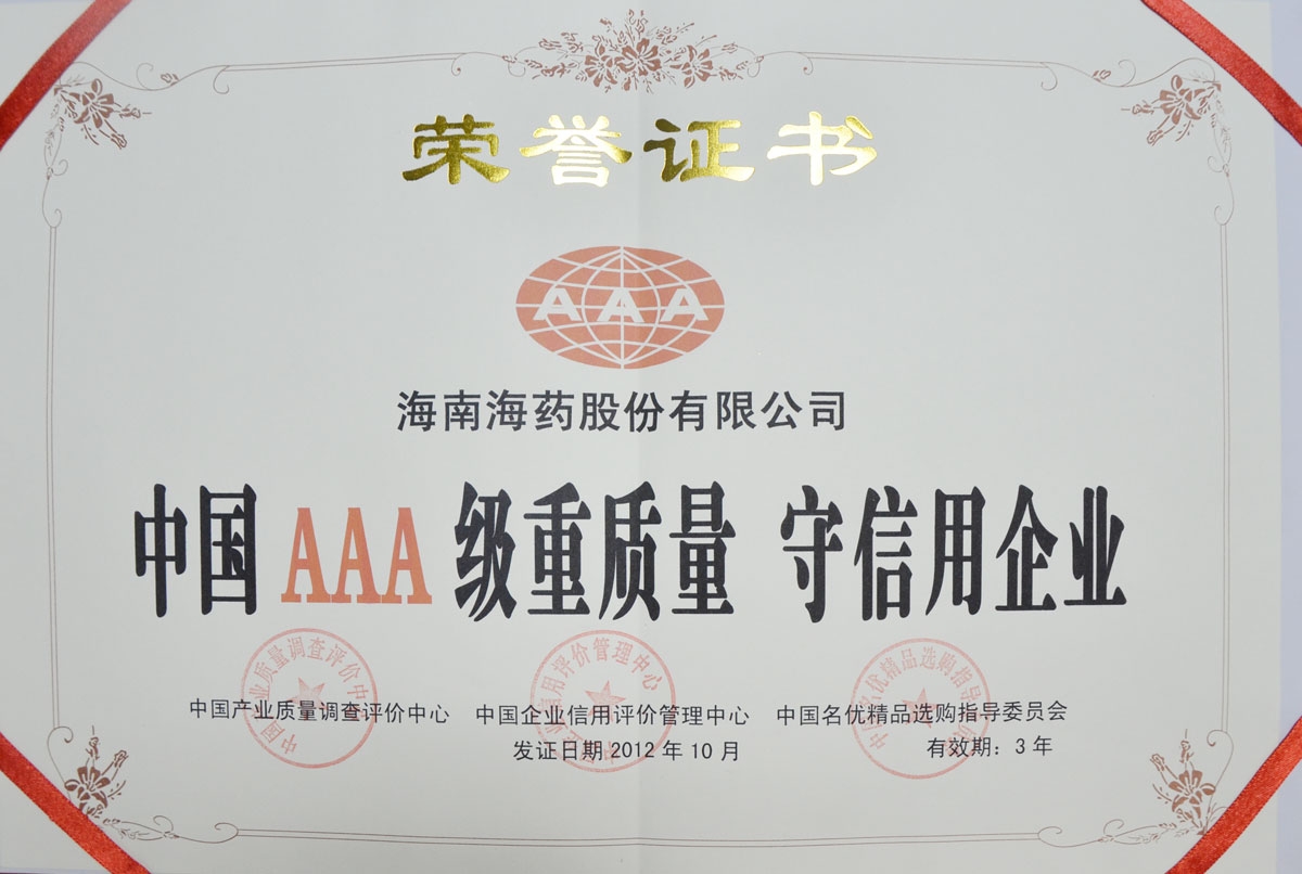 中國AAA級重質(zhì)量 守信用企業(yè)