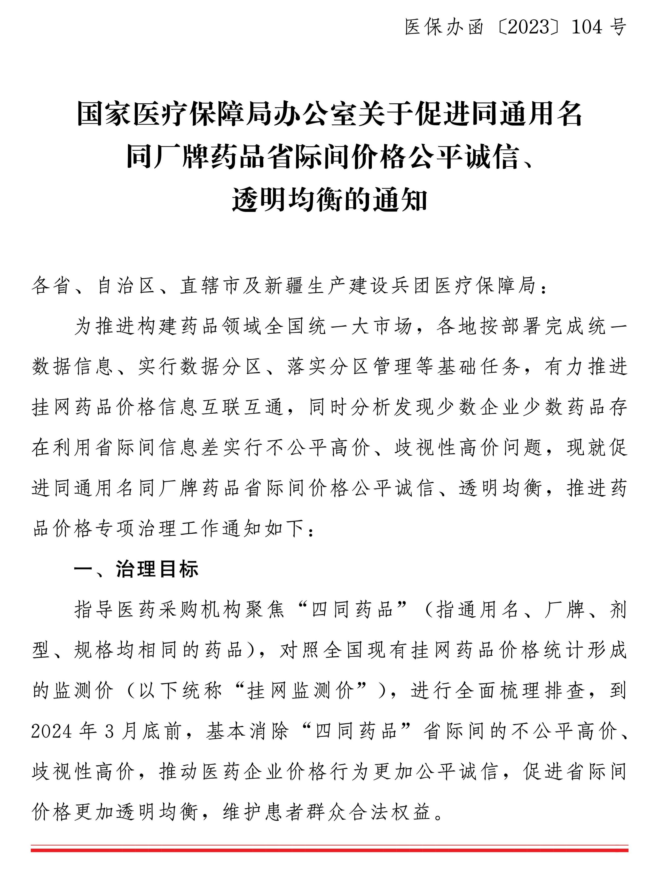 國家醫(yī)療保障局辦公室關于促進同通用名同廠牌藥品省際間價格公平誠信、透明均衡的通知